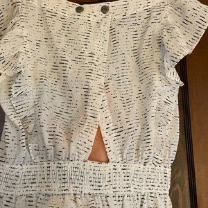 EUC BCBGeneration Casual White Ruffle Cocktail Dress with Keyhole Back, Medium