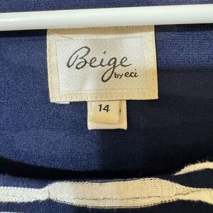 EUC BEIGE BY ECI DRESS TEXTURED STRIPED FABRIC FITTED CHIC - SIZE 14