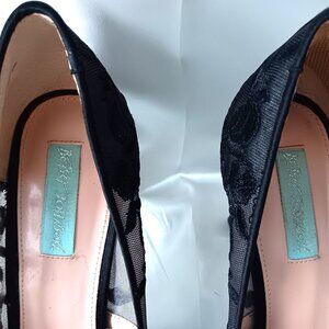 EUC ~ BETSEY JOHNSON ADLEY Black Floral Embroidered Lace Peep Toe Shoes Sz 10