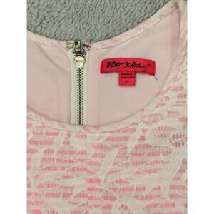 EUC BETSEY JOHNSON PINK WHITE FEMININE FLARE GARDEN DRESS COTTAGECORE 14