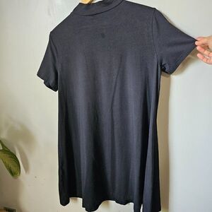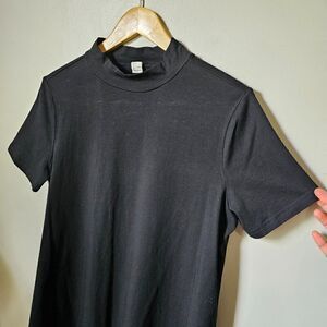 EUC BLACK MINIMALIST MOCK NECK A LINE COTTON BLEND SHIRT DRESS SIZE L