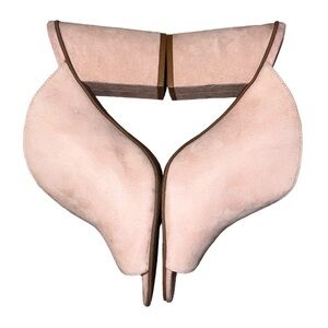 Keywords: BP, Blush Heels, Leather Mules, Wedge Heels, Open Toe, Slip-On, Women's Shoes, Size 9.5, Casual Heels, Formal Heels, Comfortable Heels, Fashionable Mules, Pre-owned Heels, Stylish Footwear, Blush Mules.