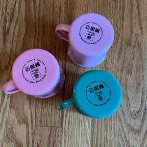 Includes 3 coffee mugs (2 pink and 1 green)