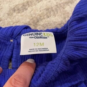 EUC baby girl matching set is beautiful for summer. Set includes skort with colorful print and cobalt blue top. No damage, stains, or odor. Smoke free home.