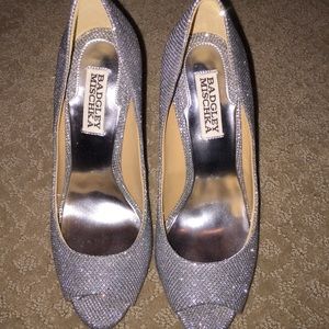 EUC (literally worn in for 15 mins in my home, they ended up being too small for me) Badgley Mischka silver Kassidy II high heels. Size 5.5 (runs true to size!). Gorgeous statement heel for any event or party! In perfect condition!!