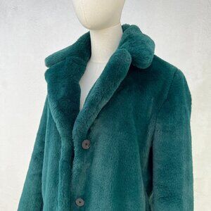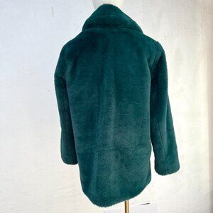 Pre-owned excellent like-new condition Banana Republic Fluffy Faux Fur Emerald Green Short Coat 2-Button Closure size Small.
