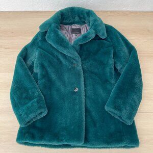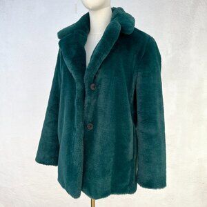 EUC Banana Republic Fluffy Faux Fur Emerald Green Short Coat 2-Button Closure S