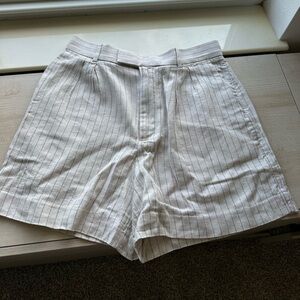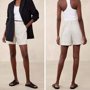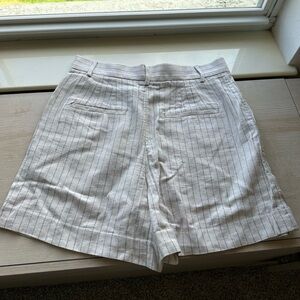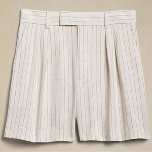 EUC Banana Republic Size 10 Linen-Blend Ivory Striped Trouser Short Ivory/Navy