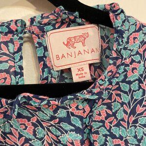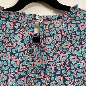 EUC Banjanan 100% Cotton Pintuck Floral Blouse Teal Pink XS