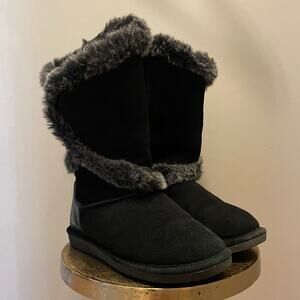 EUC Bearpaw 2410W-SHELLY Black Genuine Suede Winter Boots -size 10