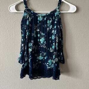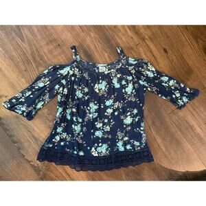 EUC Beautees Cold Shoulder Girl's Floral Top sz L