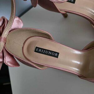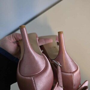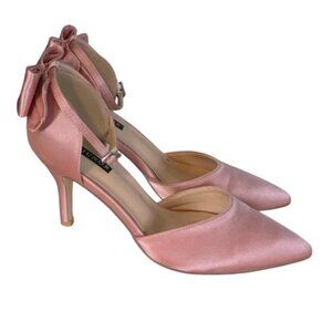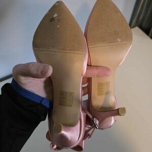 EUC Beautiful Satin Pink Pumps with Bows and ankle Straps with sparkle clasp