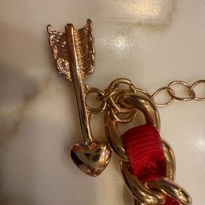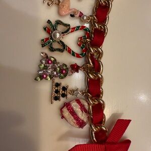 EUC Betsey Johnson Gold Tone Holiday Christmas Charm Toggle Bracelet