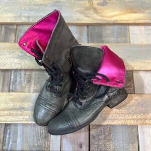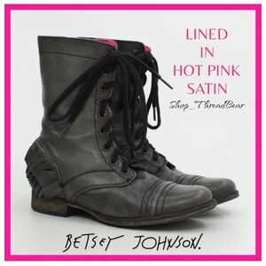 EUC. [Betsey Johnson] Vintage Convertible Gray Leather Biker Boots + Pink | 7.5
