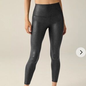 EUC Beyond Yoga Heather Rib Black Shine High Waisted Midi Legging Size XS