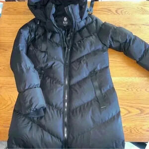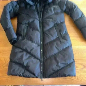 Very warm and stylish coat. Completely flawless except for one ribbon missing on pocket zipper.