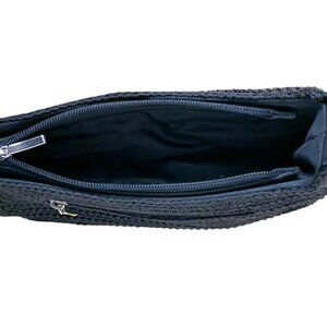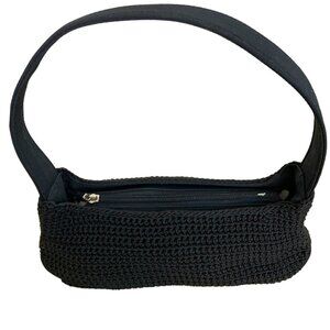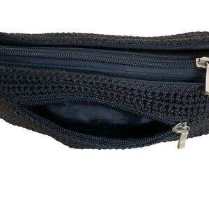 EUC Black Crochet Short Strap Handbag with Zippered Outside and Inside P…