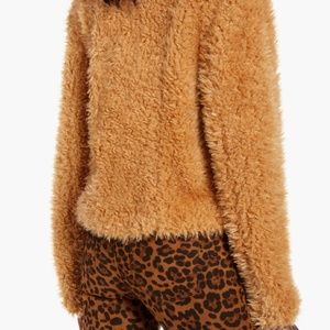 Cozy Teddy jacket. Polyester blend with satin like lining. Pockets. Open Front. Nordstrom MSRP $98.