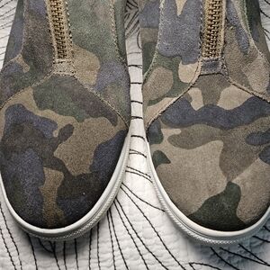 EUC Blondo Glenda Waterproof Wedge Sneaker Green Camo Zip Women's Size 9