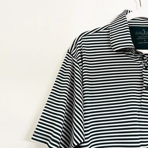 EUC Bobby Jones Golf Men’s Polo Size L Striped Embroidered Hershey Kiss Logo. 93 percent polyester, 7 percent spandex.