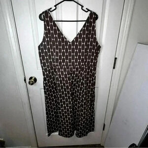 EUC Boden Fit Flare Brown White Polka Dot Sleeveless Midi Dress Size 18L