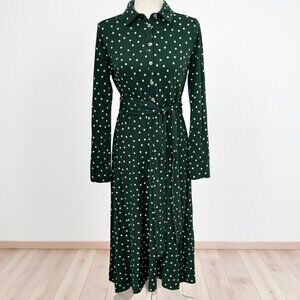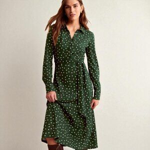 EUC Boden Laura Midi Shirt Dress | Size 8 | Emerald Night Spaced Dots