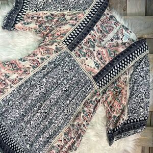 EUC. Boho [Sundance] Romantic Navy & Pink Kimono Mini Dress + Keyhole | Large