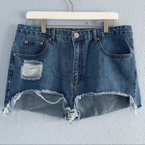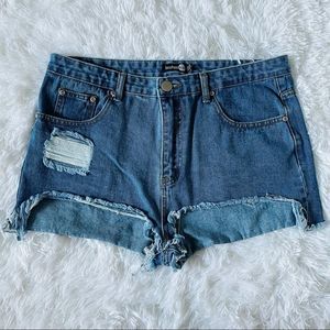 EUC Boohoo High Waisted Distressed Jean Shorts 12