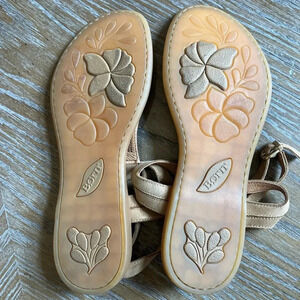 EUC Born Women's Acqualina Tan Paten Leather Strappy T Strap Sandals, Size 9