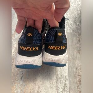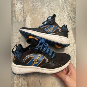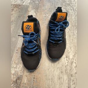 EUC Boy’s Heely’s Sneaker Skates. The classic Heelys sneaker skates- this pair is still in excellent condition, see photos for details. Simply pop the wheels out to transition to regular sneakers. Black, blue, white, and orange.