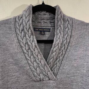 EUC Brooks Brothers 100% Wool Cable Knit Collar Sweater Grey Medium