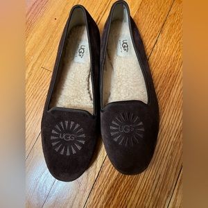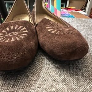 Brown suede slippers from Ugg. Excellent used condition. Fleece insole. Women’s size 8.5.