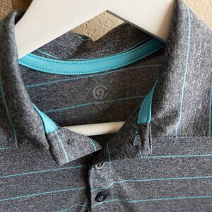 - (1) Champion Silky Quick Dry Collared Polo Style 1/4 Button Up Short Sleeve - Gray & Aqua Stripe