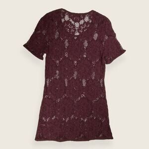 EUC | Burberry | Fishnet Floral Top | Burgundy | Size 2