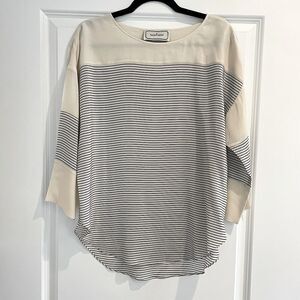 EUC By Malene Birger Silk Top Cream with Navy Stripes Sz. F 36 US Medium
