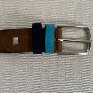 EUC CARLOS NIETO - Colombia made leather belt (L - XL) in brown with turquoise / blue belt straps 110/44