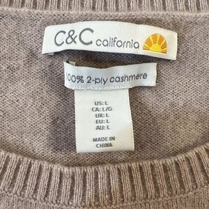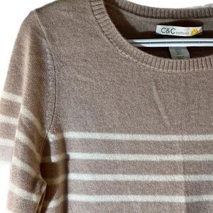 EUC C&C california Striped Cashmere 2-Ply 100% Tunic Sweater CREAM Stripe SZ L