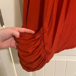 EUC CHAUS women’s rust orange thin stretchy drape pocket open cardigan large