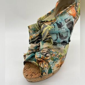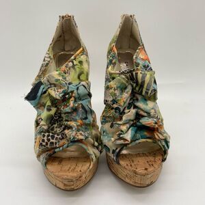 EUC CHINESE LAUNDRY Z- Heart Throb Ruffled Floral OpenToe Platform Heels 5.5M