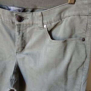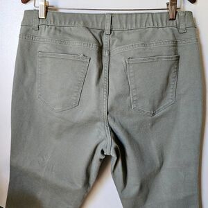 EUC CHRISTOPHER & BANKS SIGNATURE SLIMMING PETITE CAMO GREEN STRETCHY PANTS 12P