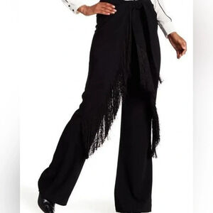 EUC CINQ À SEPT Audrina High-waist Fringed Wide-leg Pants in Black Size 2