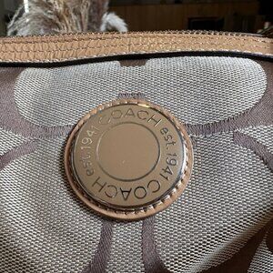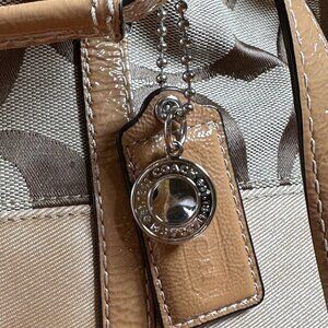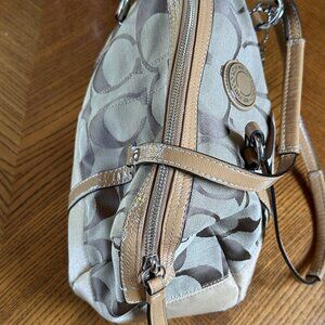 EUC COACH KHAKI SIGNATURE TAN STRIPED LEATHER BAG SATCHEL SHOULDER PURSE