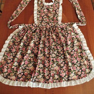 Full length 42 in. Apron length from waist to hem 25 in. and bodice length from neck to waist 17 in.. Width of apron 23 in. + lace. Apron ties are 28 in. each.