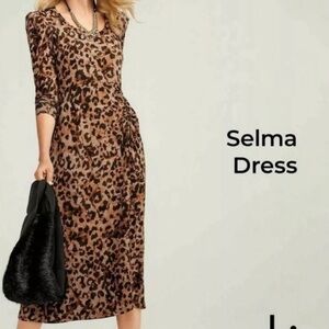 EUC Cabi Medium Black and Tan Leopard Animal Print Midi Dress