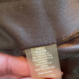 Very good condition, worn once., faux fur! Black, brown and gray colors. Size medium, could fit a large as well (see measurements) Comes from a smoke free home