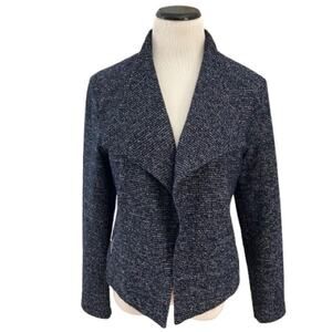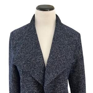 EUC Calvin Klein Navy and White Textured Tweed Drape Collar Blazer. Size M.
