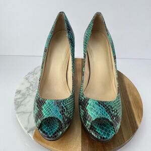 Calvin Klein Sandie Two Tone Cobalt Blue/Green Snakeskin Retro Wood Heel 7.5