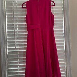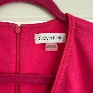 EUC Calvin Klein Surplice Buckle A-line Midi Work Dress Hot Pink (Size: 6)