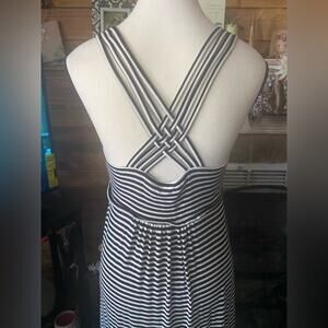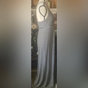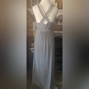 EUC Black and White Maxi dress 96 Rayon 4 Spandex intertwined strapsSize 8 30” seam under bustline 56” in length machine washable