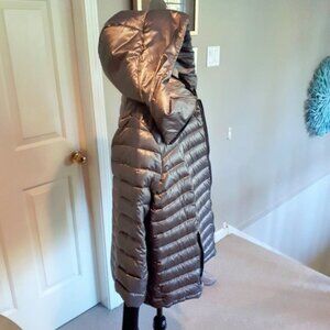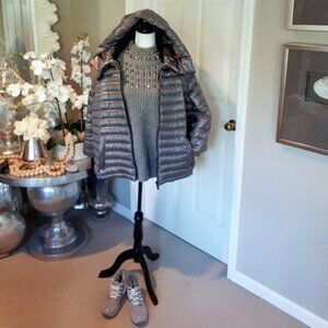 EUC Calvin Klein silver metallic shine down hooded quilted puffer coat